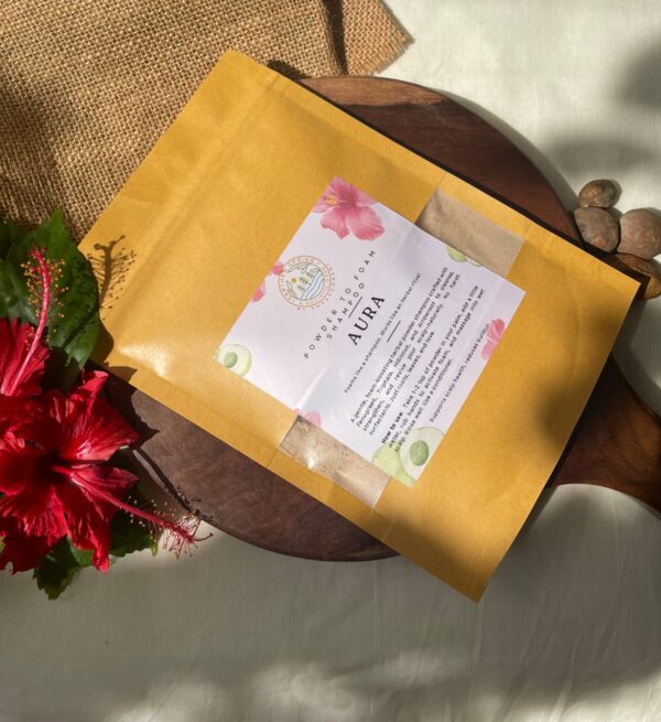 A revolution in hair cleansing. Inspired by traditional shikakai powders, Aura is crafted to feel as luxurious as a liquid shampoo — giving you the purity of herbs with the ease of modern cleansing.